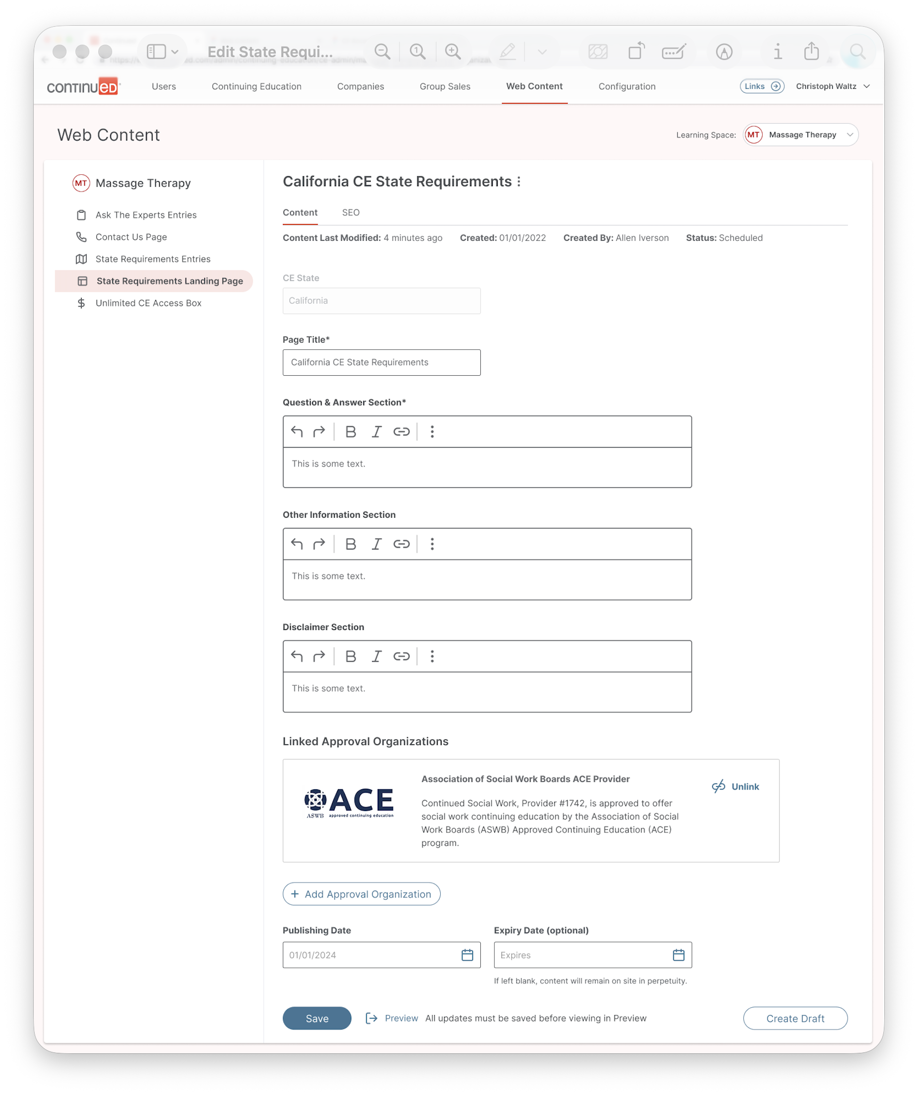 Continued is a learning platform that provides CEs to working professionals. Over two years, I led UX efforts to modernize the platform and define scalable patterns that support both internal admin workflows and external learner journeys. The redesign was prioritized to reduce operational friction, improve usability, and prepare the product for new vertical expansion.