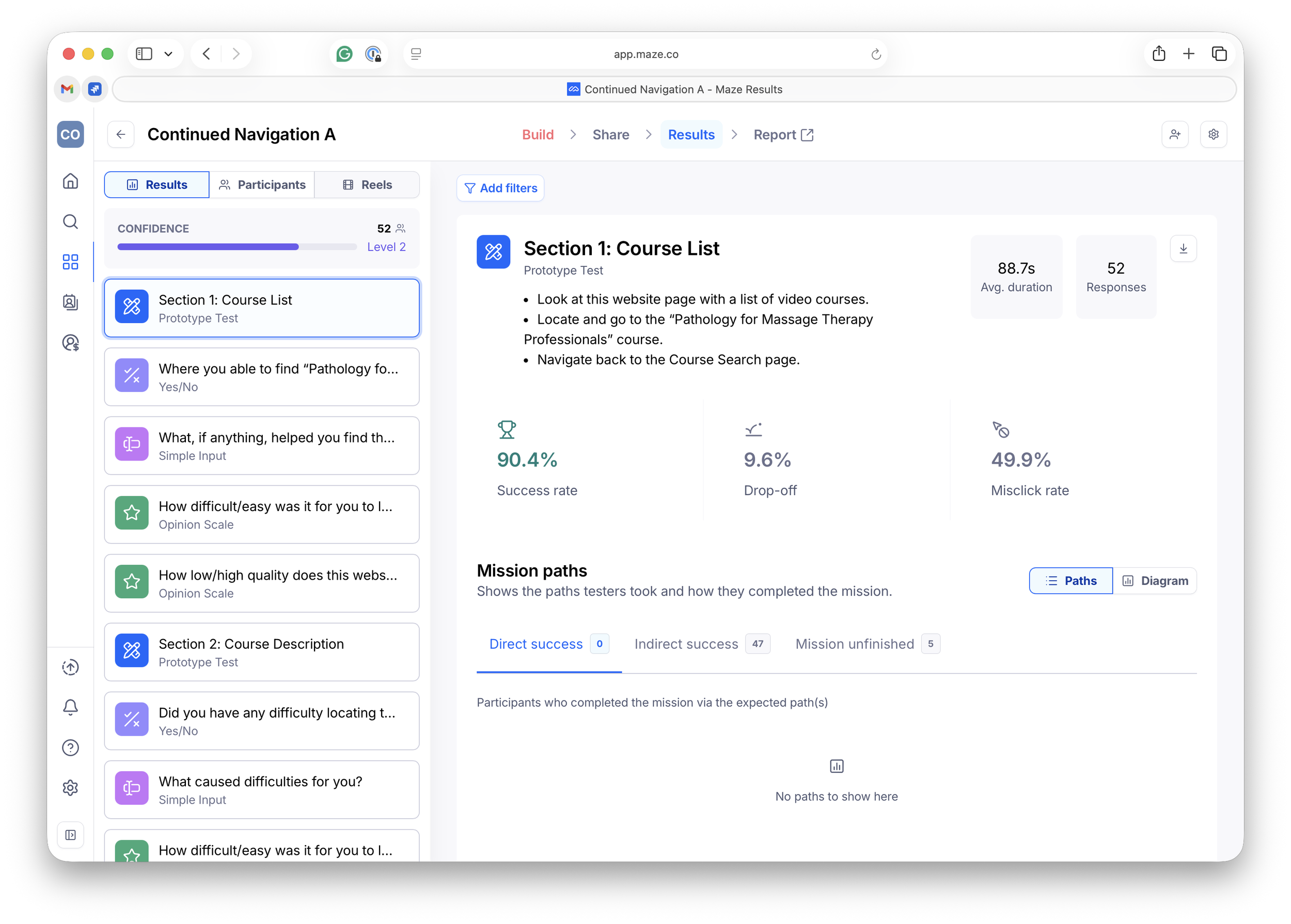 Conducted 1:1 usability testing via Zoom and Google Forms in addition to A/B experiments on Maze with <100 participants to validate user flow changes